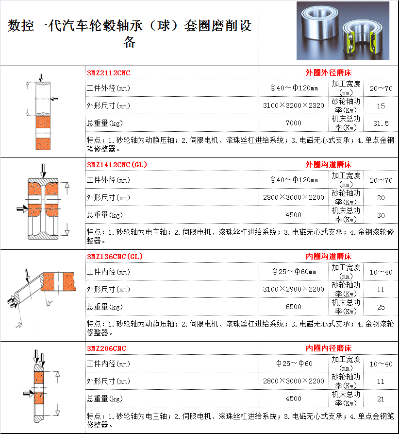用途:磨削一代汽車輪轂軸承的套圈(球) 特點: 1.砂輪軸為動靜壓軸; 2.伺服電機、滾珠絲杠進給系統(tǒng); 3.電磁無心式支承; 4.單點金鋼筆凸度修整器。