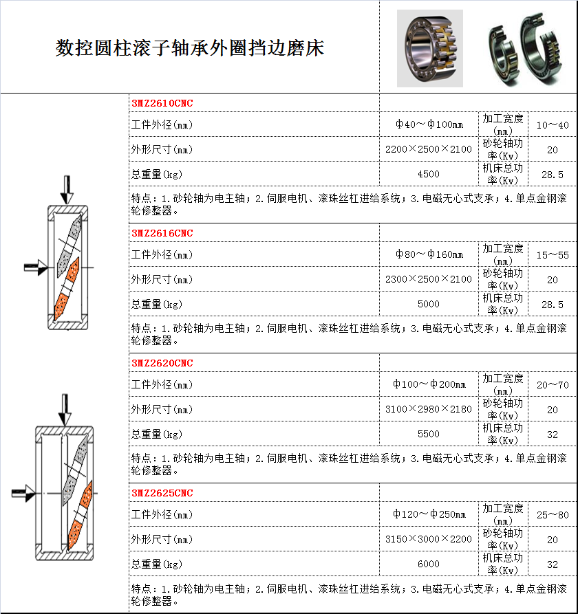 用途:磨削圓柱滾子外圈的擋邊 特點: 1.砂輪軸為電主軸; 2.伺服電機、滾珠絲杠進給系統; 3.電磁無心式支承; 4.單點金鋼滾輪修整器。