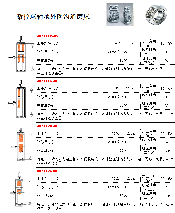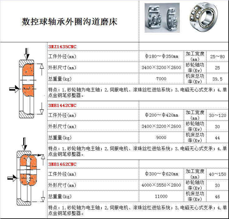 用處:磨削球軸承外圈的溝道 特點: 1.砂輪軸為電主軸; 2.伺服電機、滾珠絲杠進給系統; 3.電磁無心式支承; 4.單點金鋼筆修整器。