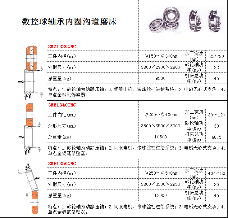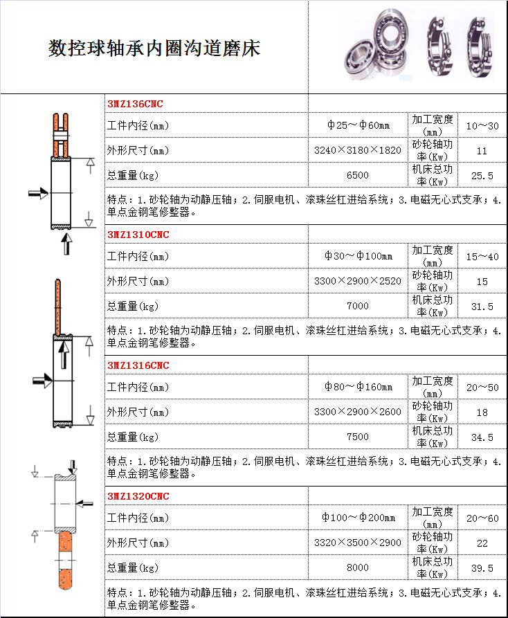 用途:磨削球軸承內圈的溝道 特點: 1.砂輪軸為動靜壓軸; 2.伺服電機、滾珠絲杠進給系統; 3.電磁無心式支承; 4.單點金鋼筆修整器。