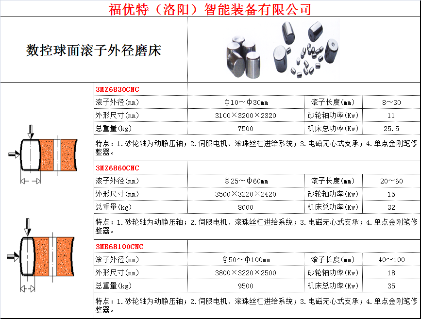 用途:磨削中型圓柱滾子軸承的外徑 特點: 1.砂輪軸為動靜壓軸; 2.伺服電機、滾珠絲杠進給系統; 3.電磁無心式支承; 4.單點金鋼筆凸度修整器。